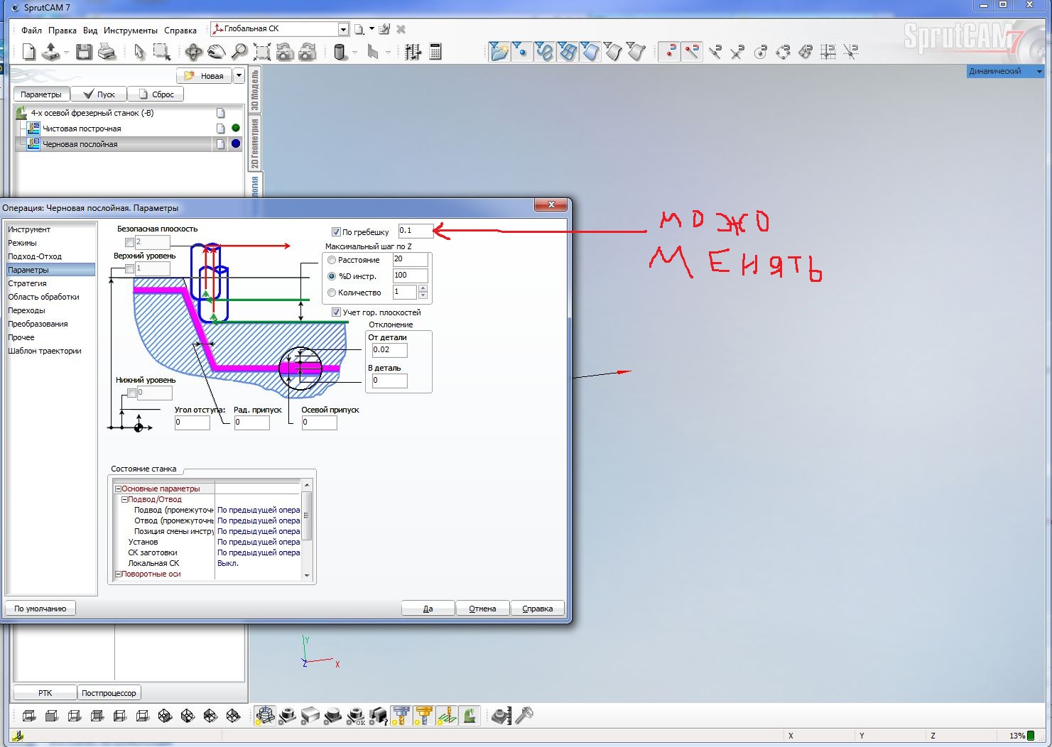 указываешь заготовку и что обрабатывать и пошло работать с заданным съемом