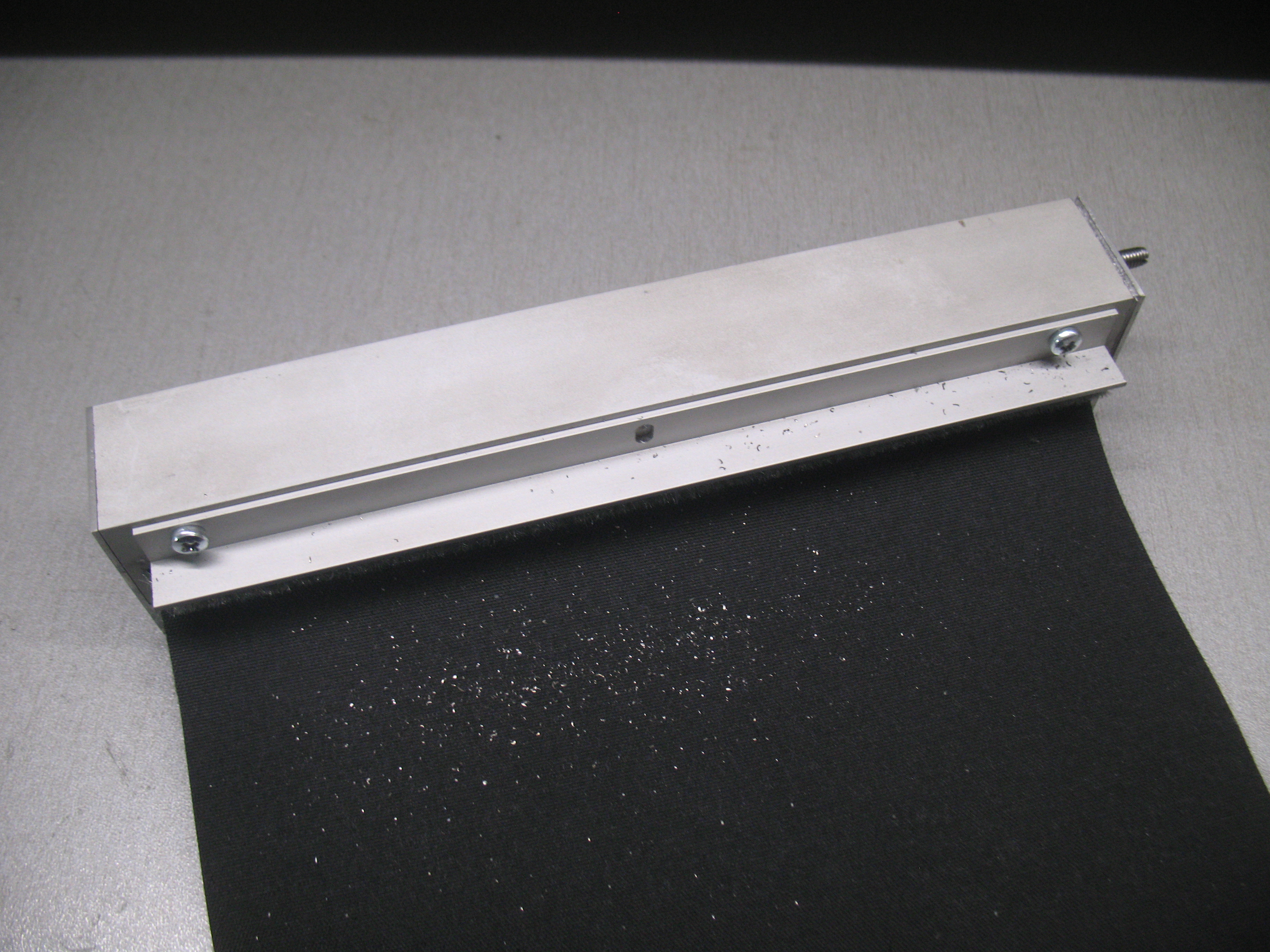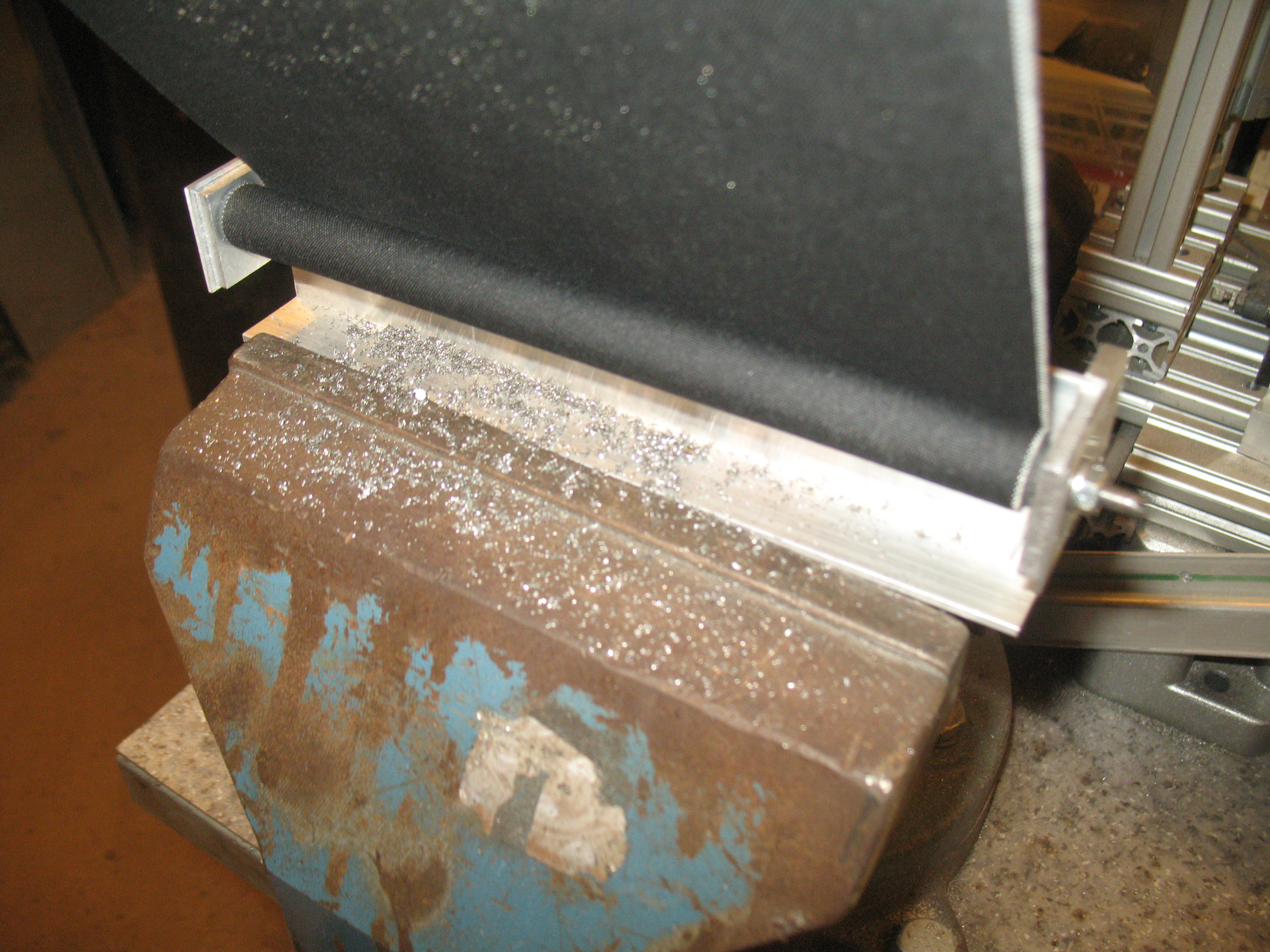 Закрепил на уголке,покатал и опять посыпал стружки. Да, опилки налипают, но при обратном движении все осыпаются с ленты.