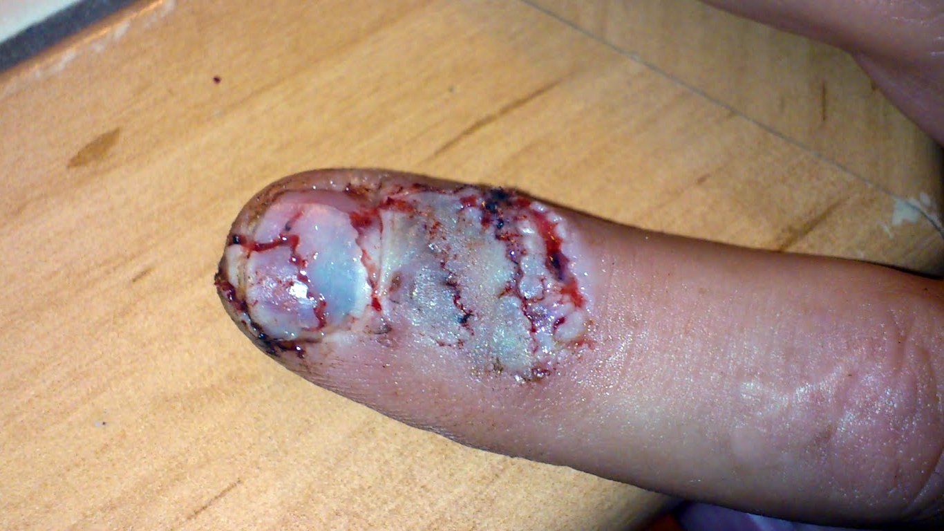 пока я тихо пучил глаза и переводил дух, сестра притащила пузырь с йодом (йодисол) и ПОЛИЛА на палец.