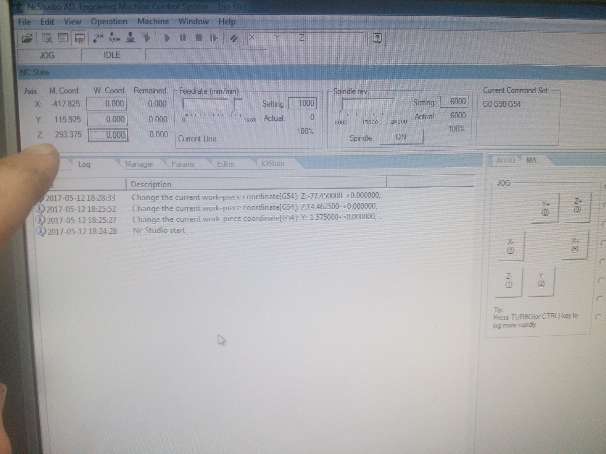 Пытаюсь обмануть станок, ноль задаю ниже заготовки. Она опять в одну высоту.