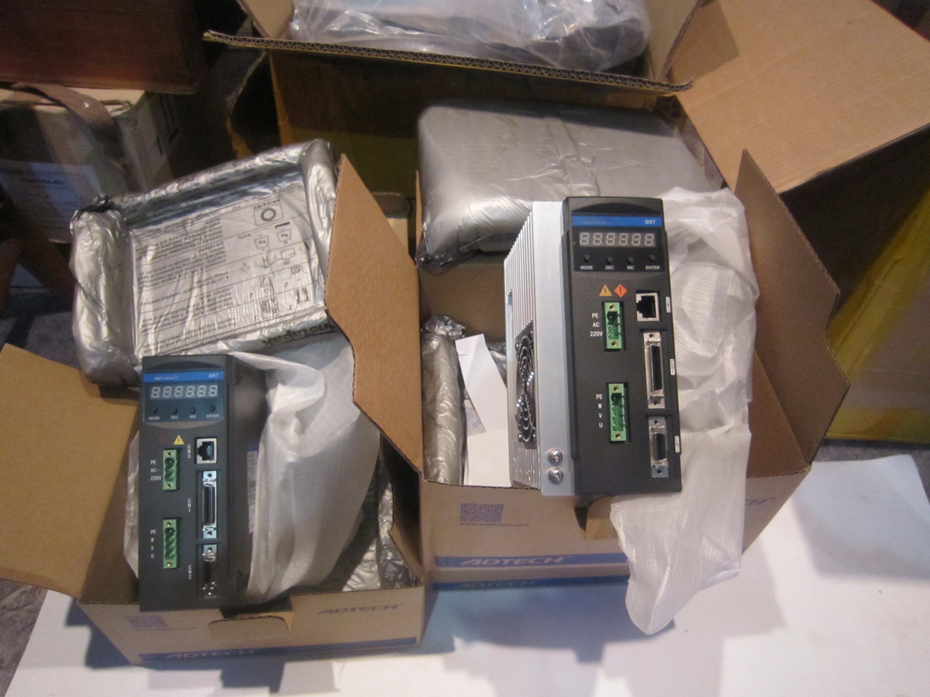 Раскрыл китайские ящики,попробую выложить фото. 3 мотора по 1 кв. 1000 об\мин.тормозом к ним 4 драйвера 1 в запас на всякий случай. 2 мотора по 200 вт. и к ним 3 драйвера по 600 вт. 1 в запас. кабели взял по 10 м. , но кабелей пришло почему-то очень много, хотя я не сильно в этом разбираюсь может столько и надо. Система чпу на 6 осей к ней блок с клавиатурой и джойстик ,это все отдельные компоненты., Китаец предложил и я взял , ещё в коробочках какие-то платы с реле ,предназначение их непонятно.,надо кузнеца на помощь. Ну и частотник брал для шпинделя ,но думаю поставить сервомотор оборотов на 10000-12000,. Всё заказывал на ADTECH на заводе ,на сайте made in Cihna. ,как приехало в крым до сих пор не могу понять ,из китая пришло за две недели,перед этим пытался узнать у китайца чем отправили, он ответил что грузовик едет не присылал никаких деклараций и номеров квитанций,а потом позвонили с московского номера и китаец на вполне сносном русском уточнил адрес Ф,И,О, и прислал смс что отправил из Москвы желдорэкспедиция .,дошло до Симферополя за 4 дня.,вот такая история с. Первый раз заказывал из Китая, и были мысли что вообще ничего не придёт.