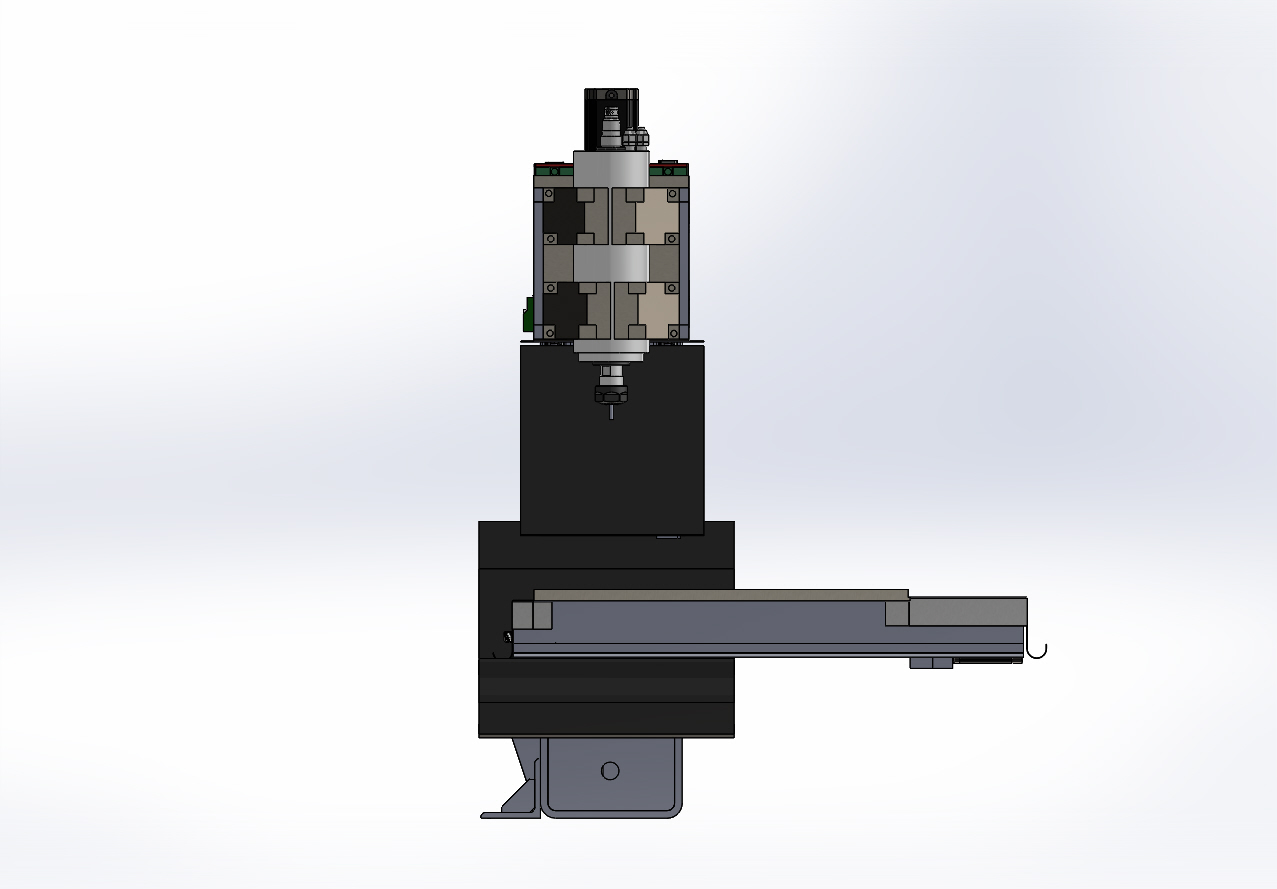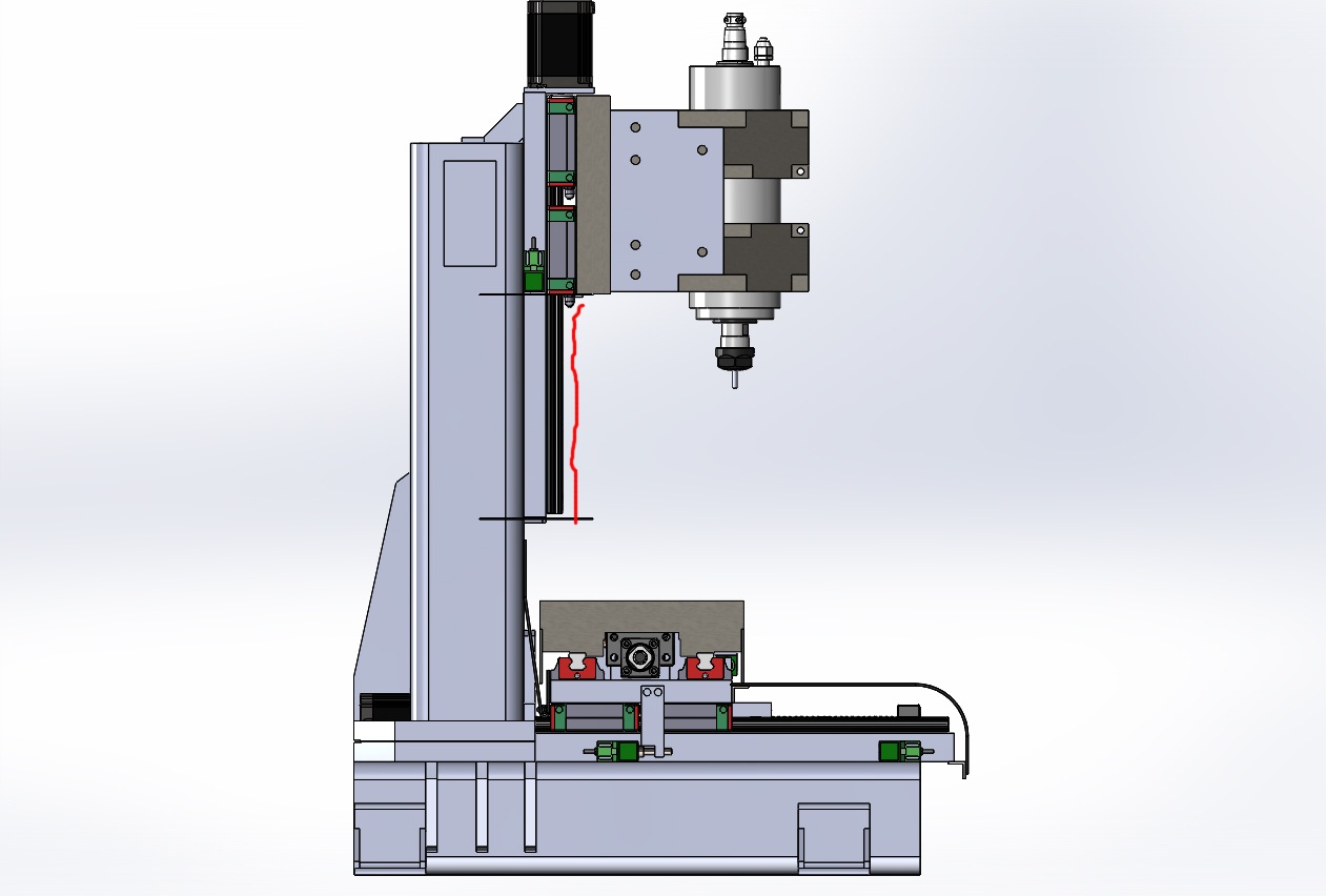 Мотор по колонной - это же вроде распространённый вид конструкции, по крайней мере все взрослые ОЦ именно такие. Здесь я применил такой вариант из-за компактности. Это одна из главных идей станка. При таком малом поле он уже получается с габаритом XYZ 560x800x800 мм. Торчащий спереди шаговик ещё 120 мм добавит.