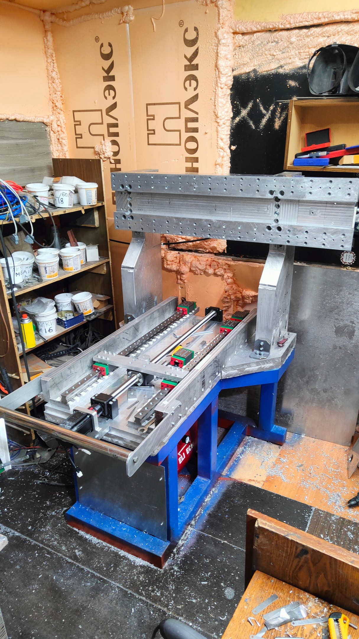 Задался вопросом что используют люди в качестве рулонной пылезащиты, какой материал. Я в своем последнем использовал резину маслобензостойкую но как оказалось она совсем не маслостойкая и поеэтому резину больше использовать не хочется а вот что на замену брать непонятно пока. Тем временем Собрана и проточена плита основания и балка портала. Протачивал плоскости на карусельнике большом совковом, обещали 2 сотки по факту вышло 6. Сшабрил сотки и устал, решил не заниматься мартышкиным трудом и заказал с али фольги разных толщин, от 0.01 до 0.05 , буду ей прокладывать рельсы. Собрана автосмена уже.Жду фотльгу и начинаю собирать раму уже, все детали для сборки рамы уже есть.