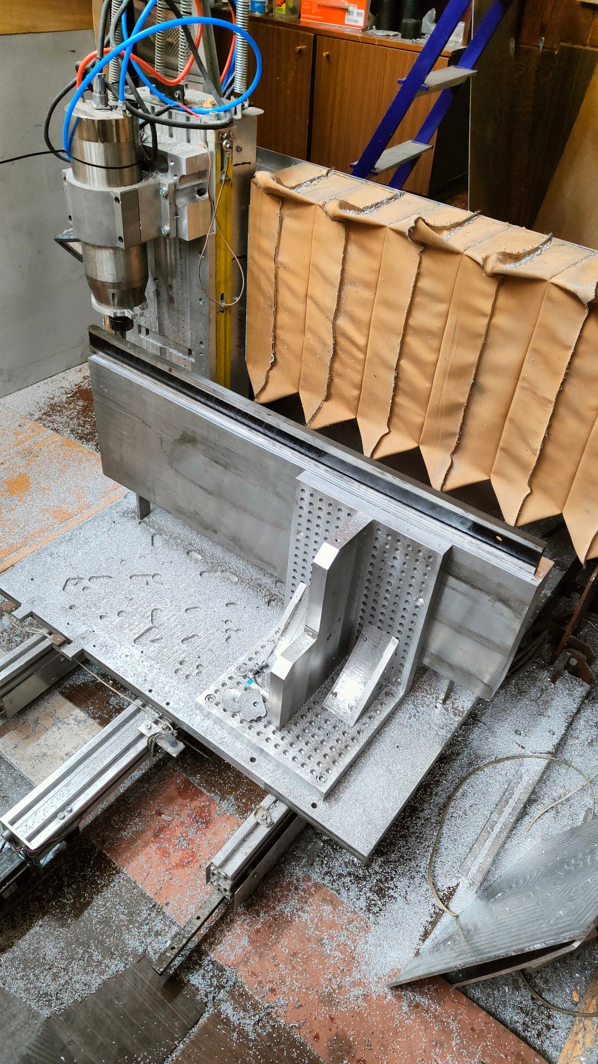 Задался вопросом что используют люди в качестве рулонной пылезащиты, какой материал. Я в своем последнем использовал резину маслобензостойкую но как оказалось она совсем не маслостойкая и поеэтому резину больше использовать не хочется а вот что на замену брать непонятно пока. Тем временем Собрана и проточена плита основания и балка портала. Протачивал плоскости на карусельнике большом совковом, обещали 2 сотки по факту вышло 6. Сшабрил сотки и устал, решил не заниматься мартышкиным трудом и заказал с али фольги разных толщин, от 0.01 до 0.05 , буду ей прокладывать рельсы. Собрана автосмена уже.Жду фотльгу и начинаю собирать раму уже, все детали для сборки рамы уже есть.