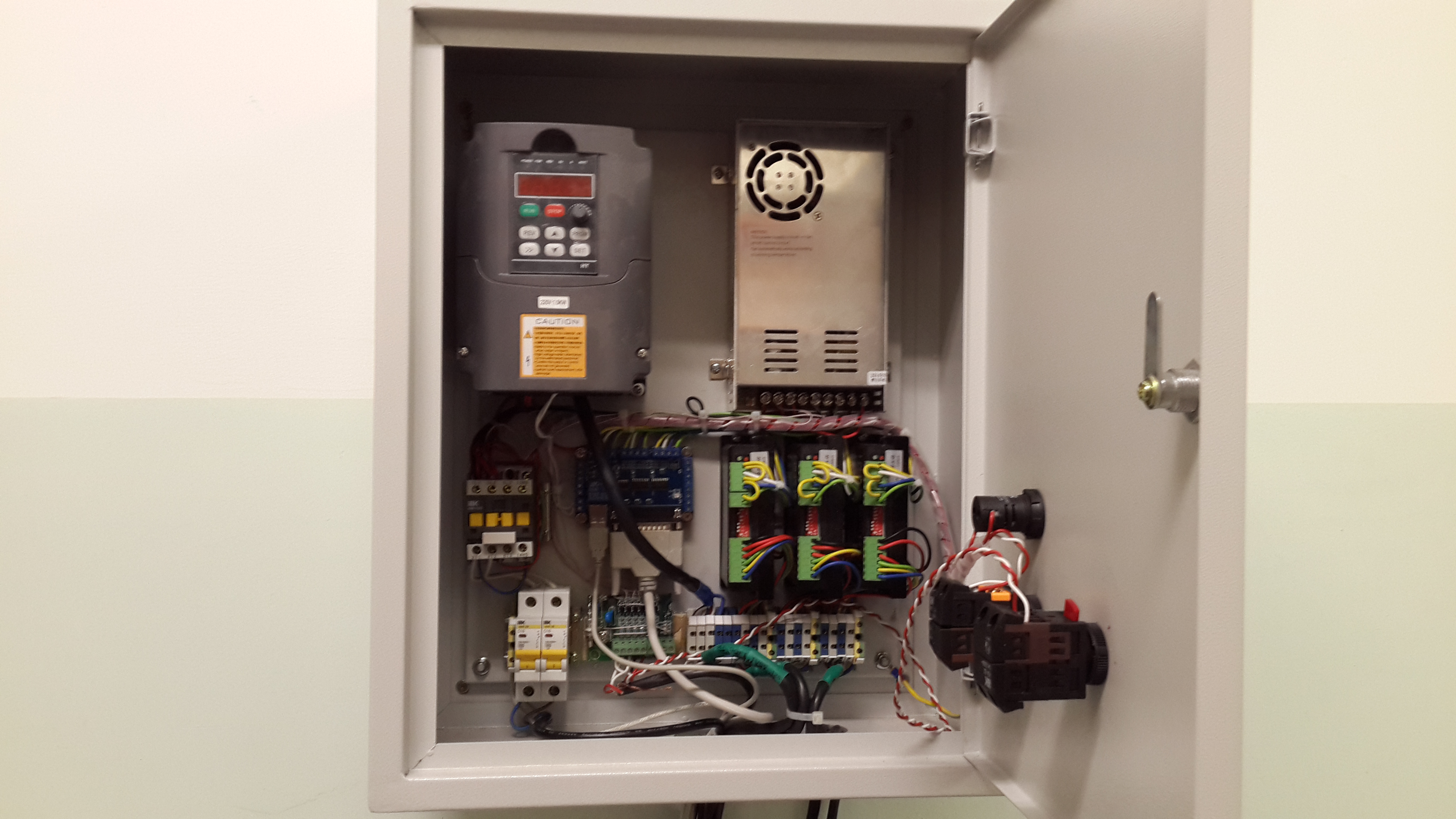 Привет! Делаю Станок! Электроника точь в точь!(Драйвера, Блок питания все с та го же (EBAY)! только у вот инвертор в России. Не могли вы сделать схему со всеми выключателями, автоматами, с платами опто-развязки. Честно говоря хочу сделать такой же шкаф! Чтоб было красиво.