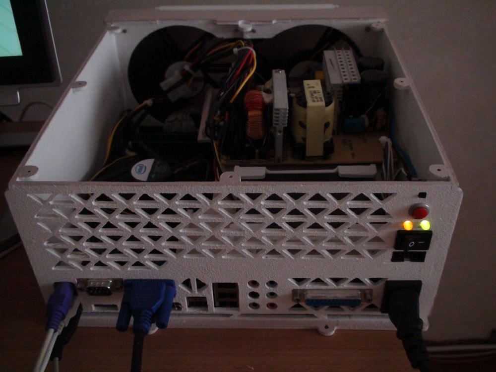Как раз подвернулся донор на роль управляющего компа, кое-что выбросил из него, кое-что поменял, вроде заработал, сижу смотрю на это гнездо со змеями, понимаю что надо бы запихать все это дело в какую-то корпусяку, но все корпусяки какие-то большие попадаются, а хотелось бы что-то компактное, желательно чтобы под столешницей поместилось, и ногами не сильно задевалось. Долго пытался найти что-то подходящее из готового, но удача не хотела улыбаться. После очередного мозгового штурма было принято волевое решение запилить этот самый корпус, вроде ничего сложного, ну да, пока не начнешь делать