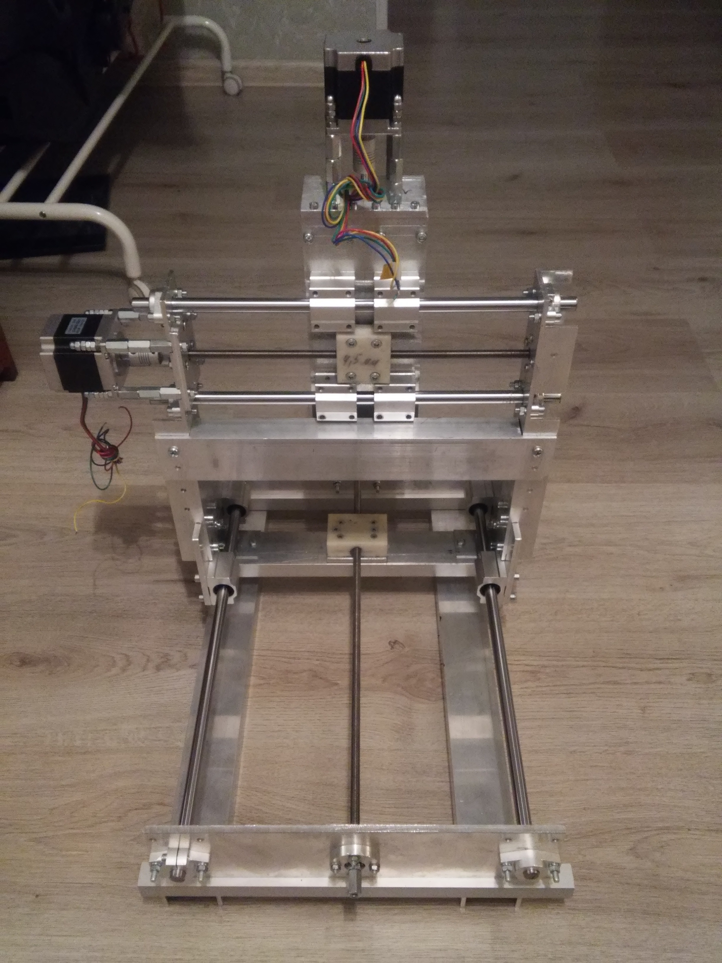 Рабочее поле пока не знаю какое, а вот размеры "станка" по X 315мм. Y 500мм. высота портала от пола 410мм.