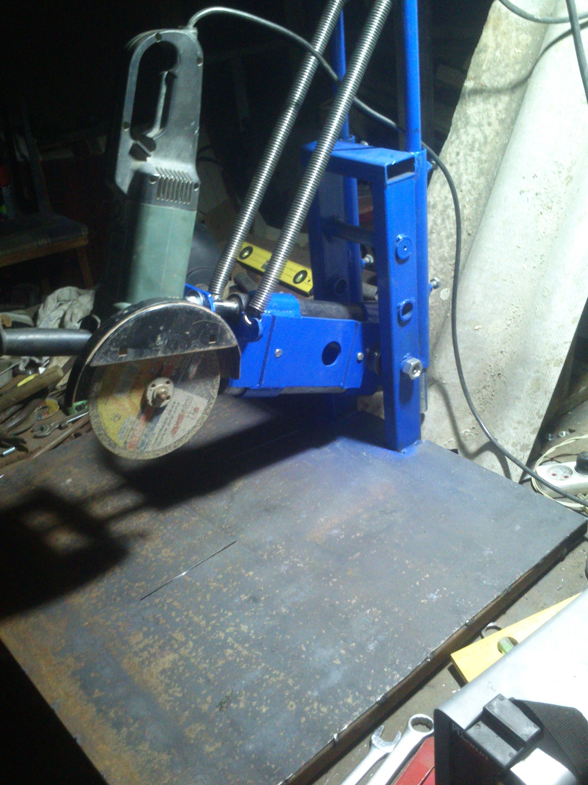 Самодельных конструкций отрезных станков много, советую вот такой вариант с использованием амартизаторов. Вот в моем исполнении: