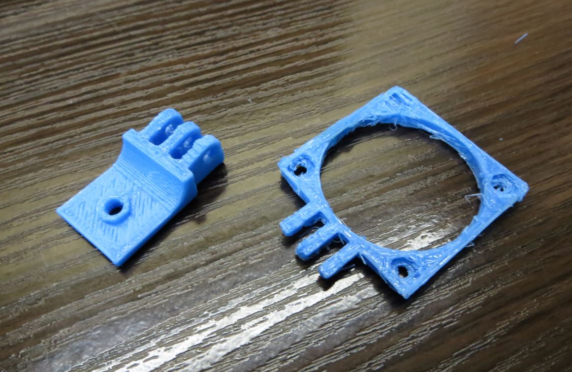 Из четырёх деталей, нормально напечаталась -первая , а самая большая - по ней были сплошные косяки - то слайсер не хотел её обрабатывать - не замкнутые вектора, то принтер по ней стартовать не хотел ( вырубал программу и всё). Слайсер сделал в итоге по ней коды, но как то не оптимально. Первая деталь напечаталась за 1 час. Вторую деталь принтер 2,5 часа мурыжил , а потом вообще отказался работать. Для обдува деталей приладил временный бумажный фартук - который от вентилятора воздушный поток направлял на деталь. Через 2,5 часа печати второй детали шаговые движки стали пропускать шаги - причем по многу - на сантиметр не до двигал каретку.. Подумал перегреваются и поставил им на обдув мощный вентилятор, но они слегка теплые. Либо это экструдер - стал больше тока потреблять, так как он "протёк" и возможно поменялось его энергопотребление, либо блок питания стал глючить от нагрева - он 4,2А - то есть почти на пределе -для фрезера его было с запасом только на движки, а движки и экструдер 3 d принтера ему уже в притык по нагрузке. Код посылал с компьютера, так как печатал с прошивки 1.0.6 - а на ней экран с картой не запустились. Это очень не удобно - пытаешься на компьютере открыть другую программу и принтер начинает "спотыкаться".