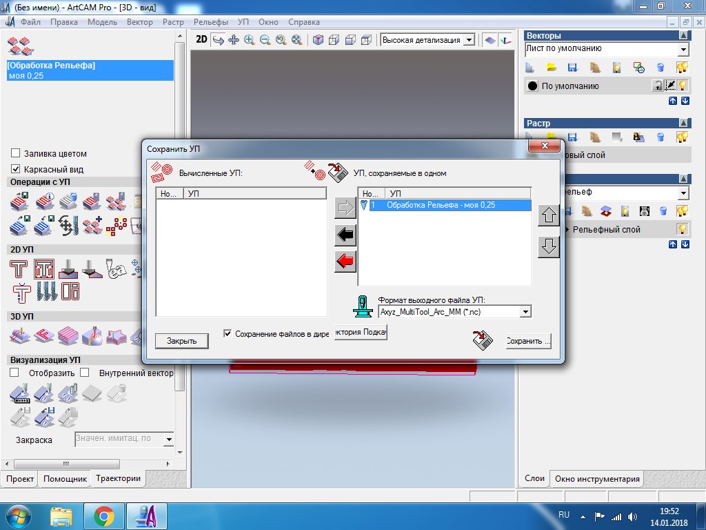 а ты так и режешь гроверами? или добавлял другие фрезы? я купил концевые сферические 0,25, а вписать что то не получилось. что то не так прописал в настройке фрезы и она углубляется сразу на 12мм вместо 4. поставил в один рез и она заглубилась на 15. дальше успел остановить и она осталась жива)nemes13 писал(а):Ну да, и я в ноябре обзавелся этим же чудом. И с помощью форума оживил после скоропостижного конца. А выгружаю немного подругому.