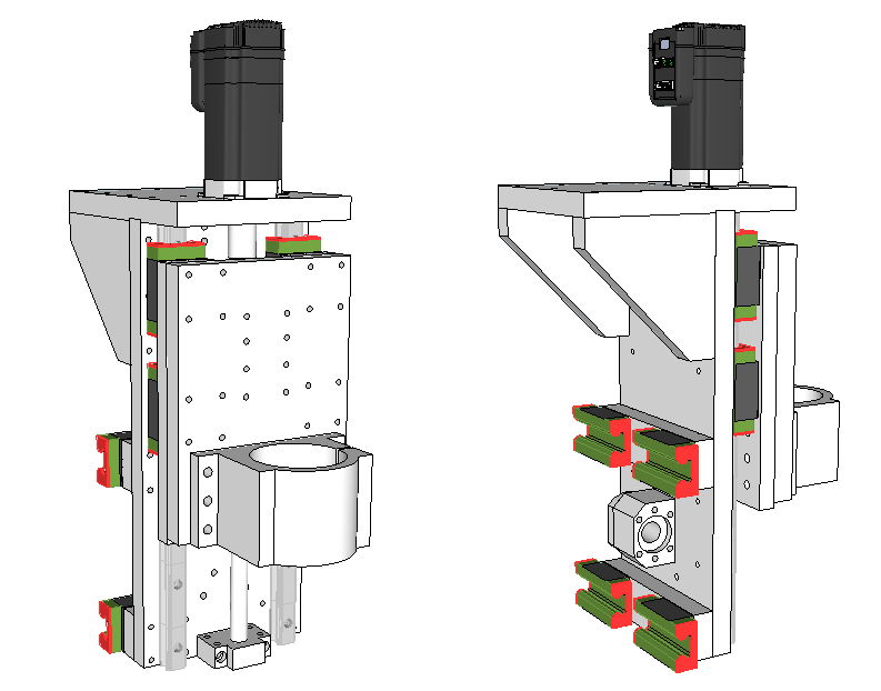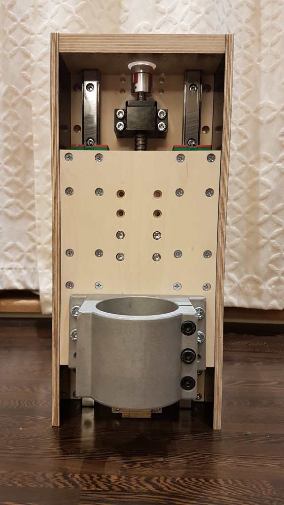 Из металла я уже делал, теперь хочу из алюминия. Да и вес оси Z, на данный момент из фанеры - 10,6 кг, а еще добавить шпиндель, аспирацию, мотор, провода и прочую мелочевку, и если учесть, что фанеру заменю на алюминий - то вес оси будет не легкий...