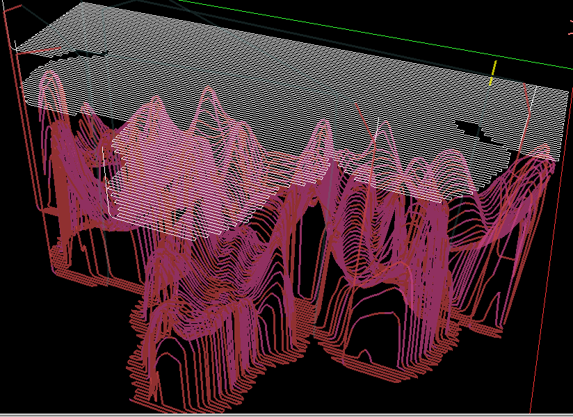 пройдя по красным линиям(я задаю небольшой "съем за проход" - и используя тонкую фрезу выбираю материал) - можно тонкой(этой же) фрезой проходится по рельефу 1-ин! проход - т.е. в один слой - т.е. не задавать "съем за проход" - и при этом не будет нагрузки на фрезу - т.к. - не останется мест с несрезанным рельефом более "