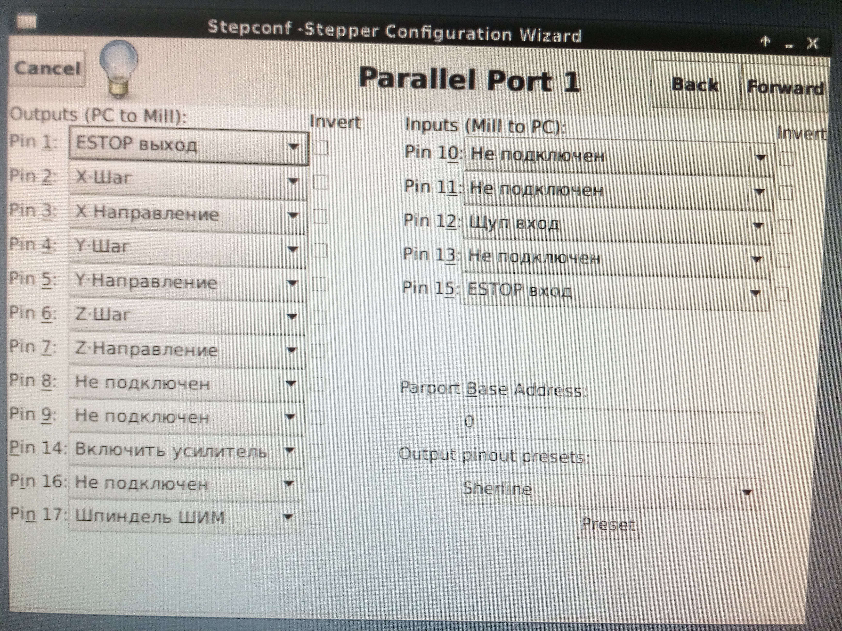 Конфигурация пинов LPT порта для Mach3 и LinuxCNC могут отличаться. Отсюда и проблемы.