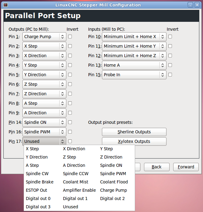 Подскажите на какие пины что выставлять когда подключу LinuxCNC.