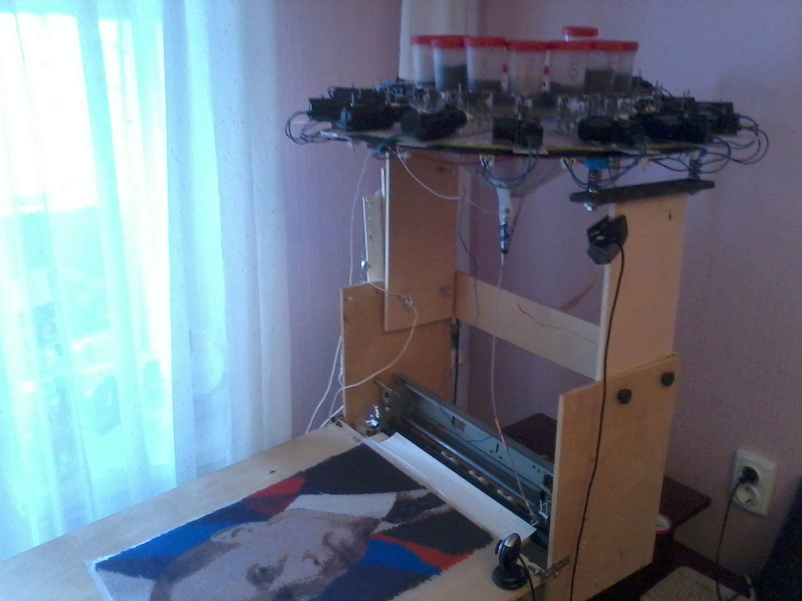 Вот я уже почти реализовал, только в замен бункеров на плоскости ставятся кассеты, где выложены стразы определенного цвета, выложены на клеевой основе, усилие отклейки которой менее моего пневматического пинцета, а в свою очередь, клеевой состав основы больше, чем сила вакуума пинцета... (соответственно наконечник пневмо пинцета под рельеф стразы.