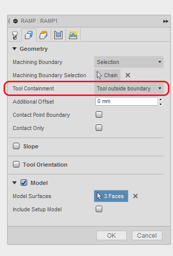 При этом убирается строчка (девятая кажется) с выбором инструмента но через строку есть коррекция H1 она остается. повлияет это или нет ,проверить возможности не было. Есть еще затруднение. ктонибудь использует границы траектории? по аналогии со спруткамом. там можно указать зону куда инструмент заходить не должен. Тут же нашел как указать зону обработки ,но как проинвертировать ? Чтоб он обрабатывал ,лишь снаружи контура а не внутри него ?