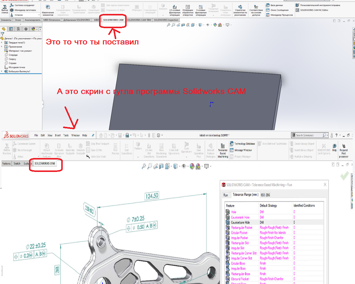 Тогда почему на твоем скрине программа Solidworks CAM это не SolidCamaftaev писал(а):opc21 писал(а):я в первом посте указал что установил!