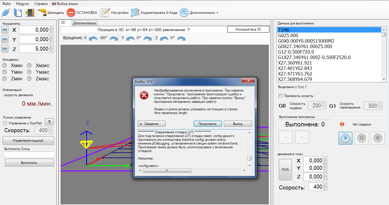 Тоже тестирую прогу, у меня при рисовании кругов пропадает часть траектори. т.е не полукруг идет а прямая. В одном месте. В новой проге с github, при запуске фрезеровки выплывает ошибка см. фото.