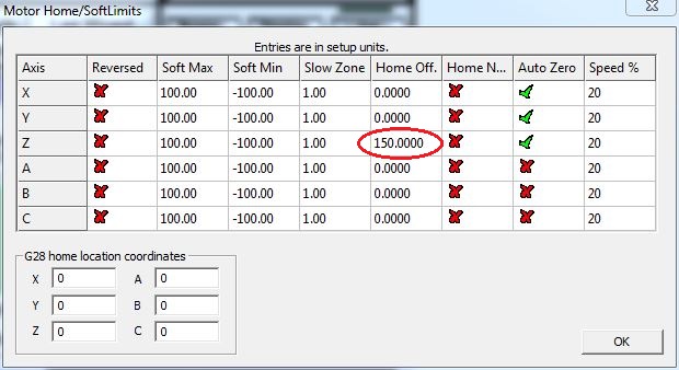 Подскажите пожалуйста по поводу Home. Ситуация следующая. Оси Х и У базируются в минус. Соответственно, после хомления в координаты Х и У прописываютя нули. С этим все понятно. Ось Z хомится в плюс и после хомления ей тоже прописываюся нули. Можно ли сделать так, чтобы после хомления оси Z, ей прописывалась координата ну скажем "+150"?