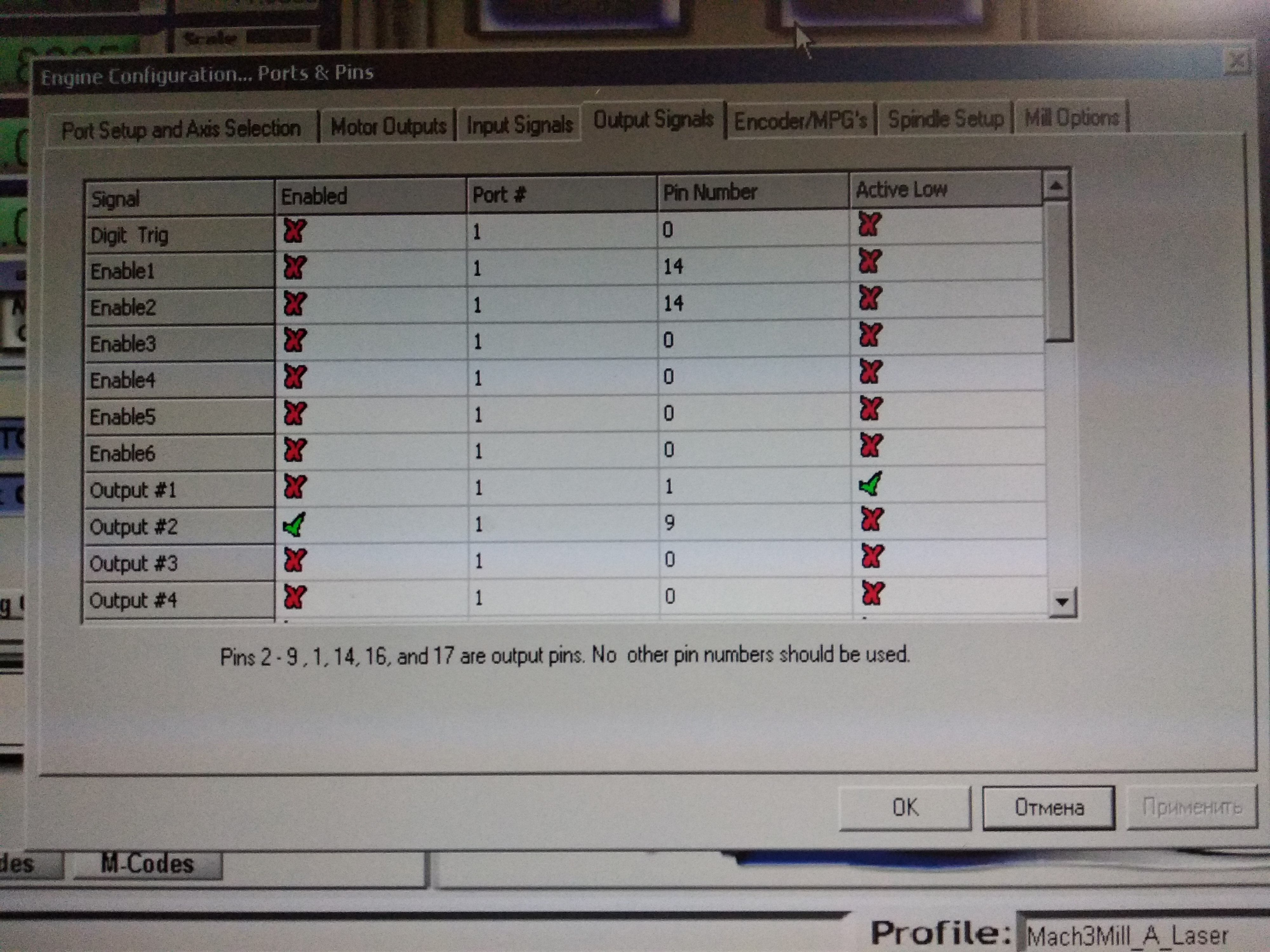 Для начала решил попробовать просто управлять сигналом на ноге LPT-порта - снять сигнал с 9 ноги, которая тупо идет на контакт контроллера - ось А - Dir.