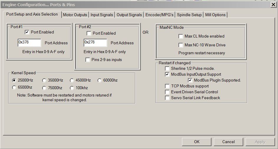 Далее настраиваем Mach3 для работы с частотником.