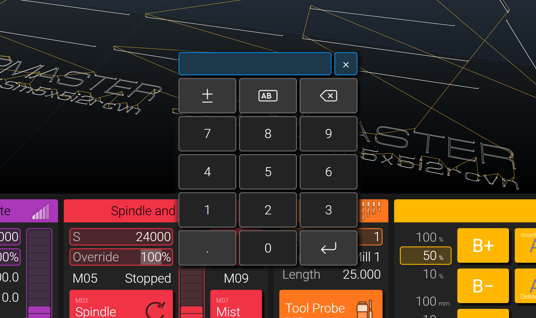 Добавил виртуальную клавиатуру для сенсорных экранов (ввод числовых параметров и команд в строку MDI).