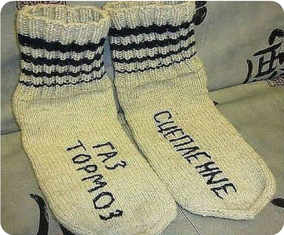 У кого коробка автомат, надеваем левый носок пяткой к верху!