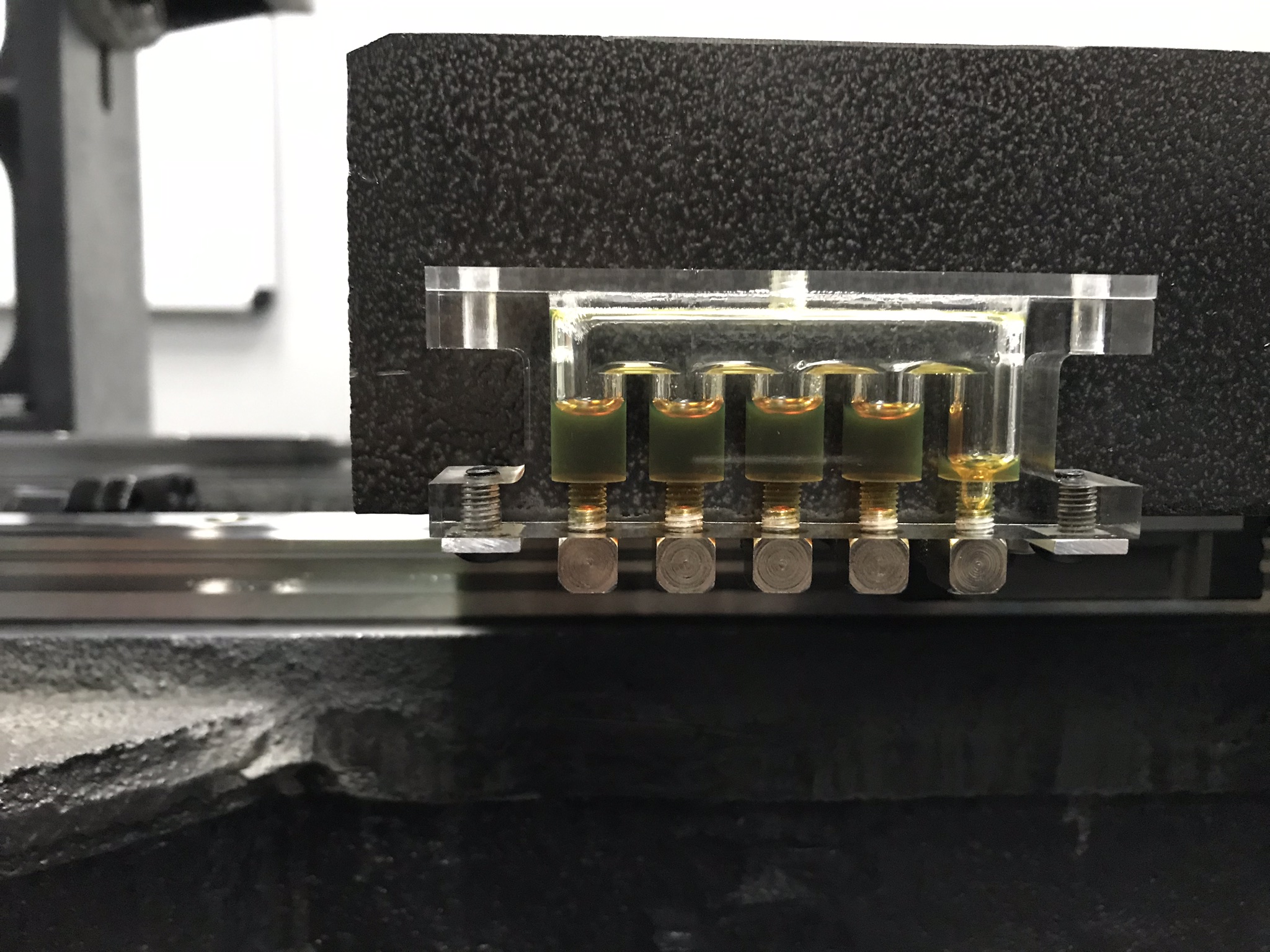 - резьбы на пневматических фитингах не хватало для вкручивания в корпус каретки, пошли в шод стойки для печатных плат с резьбой М5: - испытание каретки на самотек, остановился на порции 2мл: -дальше фрезеруем корпус: - и собираем, решил крышку на клей потом посадить, вдруг придется подавать смазку принудительно, пусть будет герметично уже сейчас: - сегодня испытания проходили на оси Х , этап сборки: - и сами испытания , было два этапа, после полного опустошения, а это примерно 30мин. , было повторно залито масло. Трубка к швп самая короткая, в нее убежало раньше всех, но как видно на фото всем досталось поровну: Масло использую специальное "АГРИНОЛ МАСЛО ДЛЯ НАПРАВЛЯЮЩИХ СКОЛЬЖЕНИЯ ИНСП-110 (ISO VG 220)".