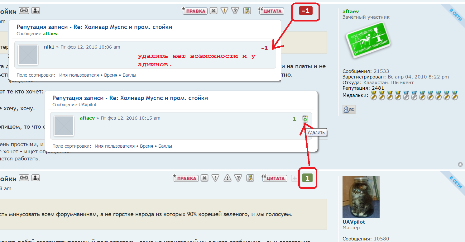 так точнее.UAVpilot писал(а):Открыть возможность минусовать может любой зарегистрированный пользователь, даже не написавший ни одного сообщения - ему достаточно поставить 400-й плюс в репу любому пользователю иу негоу того откроется возможность минусовать.