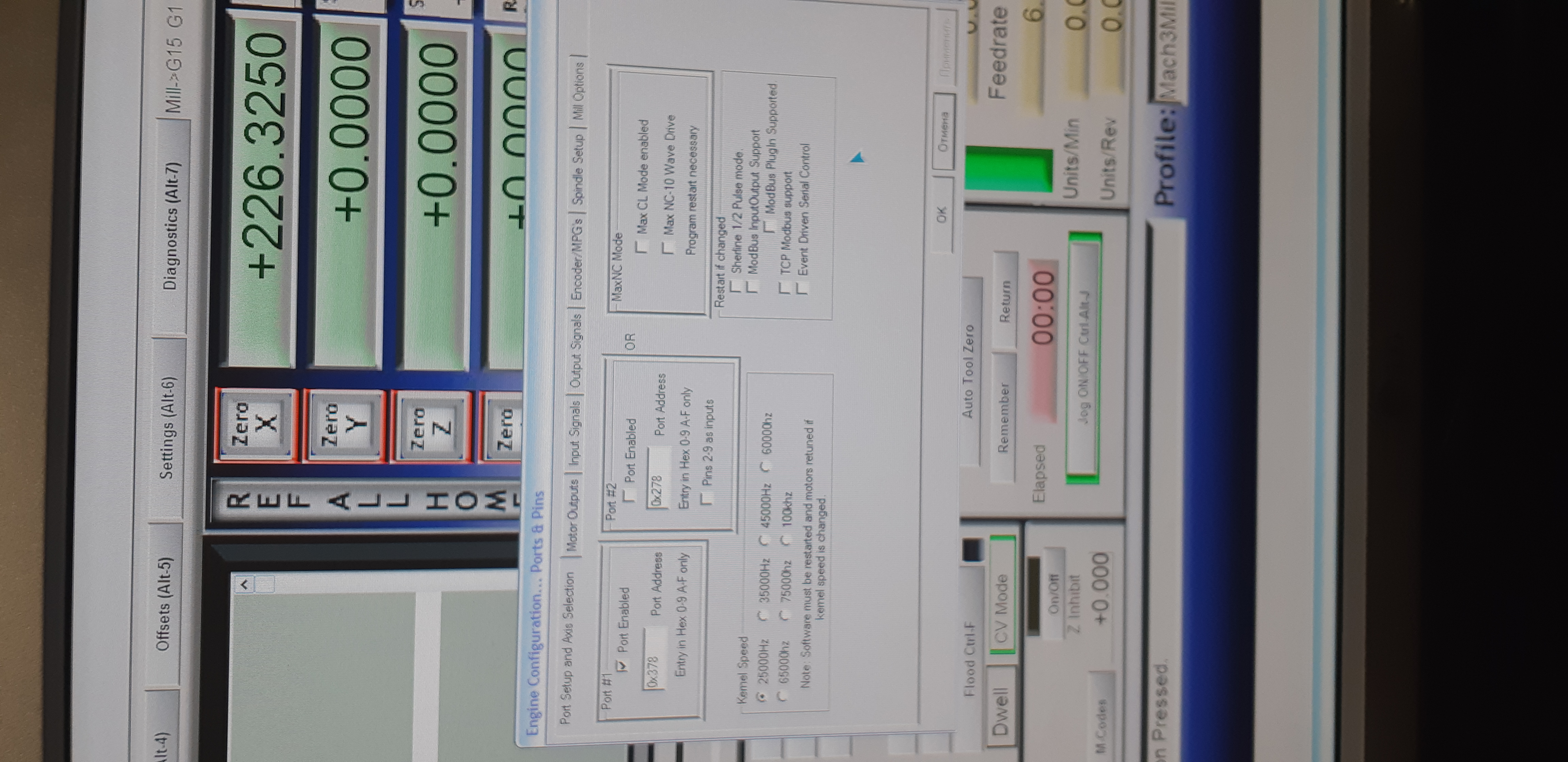 Добрый вечер Посмотрите пожалуйста настройки Mach3 может что-то не так