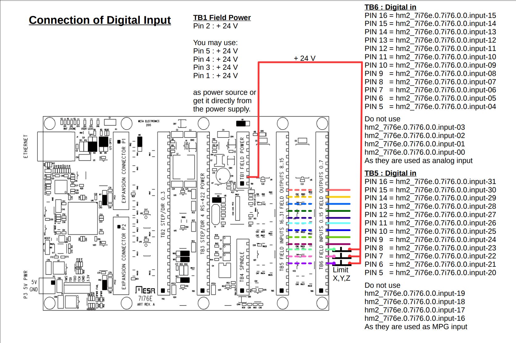 Здравствуйте, пытаюсь подключить Vers PR к 7i76. Контакт "to controller" подключил к hm2_5i25.0.7i76.0.0.input-04 , 5v и ground к TB2 19 и 24. Между VCC и сигнальным припаял сопротивление из комплекта (4.7к)