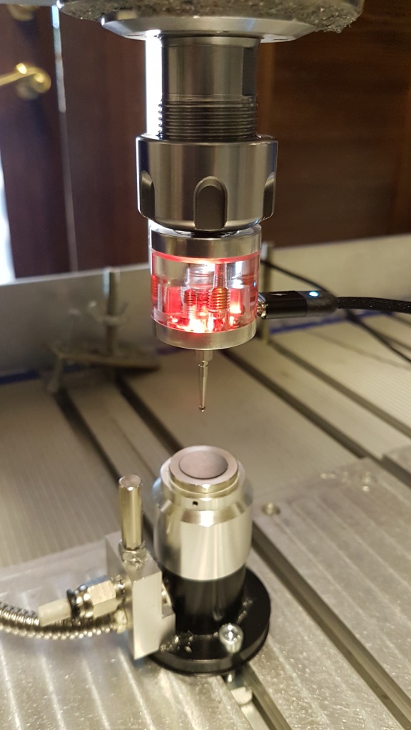 Отсоеденил кабель, вставил центроискатель в шпиндель, подключил кабель - и на тебе, такой же результат, как и с первым центроискателем! горит красным, греется. На нажатия - не реагирует. В MACH3 digitize активно, даже если отсоединить кабель от ЦИ. Горит до тех пор, пока плату переходник не выключишь микро выключателем.