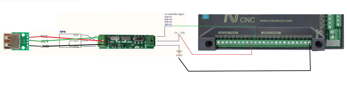 У меня еще 2 датчика подсоединены параллельно (высоты инструмента и нуля по Z) которые работают следующим образом:
