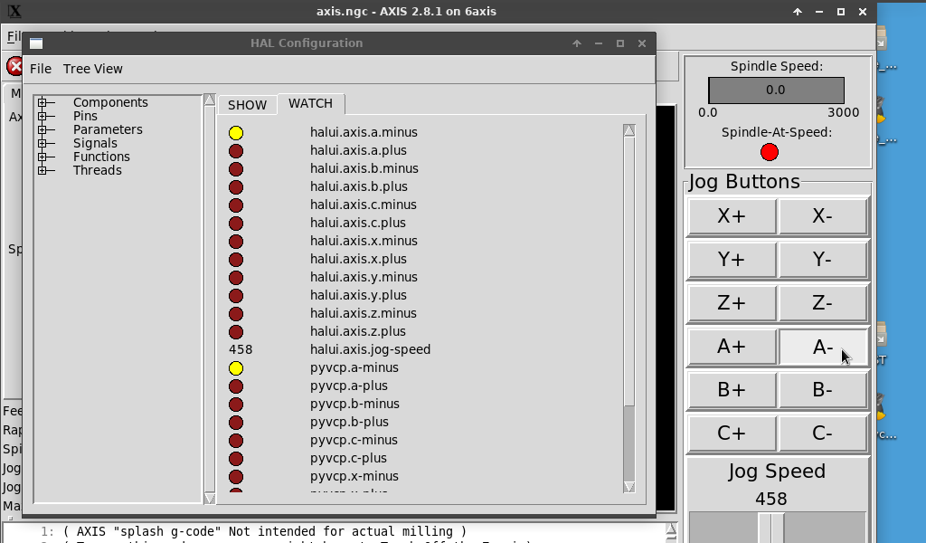 Что-то натыкал, и там где задается частота ШИМ 100Гц, тогда чуток вращается, но ни на что не реагирует кроме как вкл/выкл шпинделя с заданной частотой.