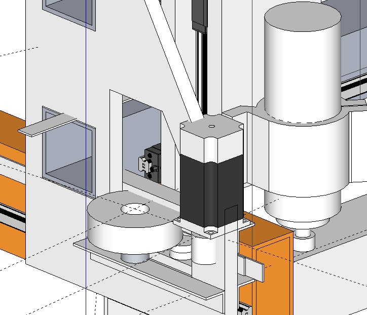 решил запихать шаговик в балку, натяг ремня будет осуществлятся перемещением движка вверх. с задней стороны балки оси Х сделаю отверстия и впендюрю вентиляторы для охлаждения шаговиков по Х