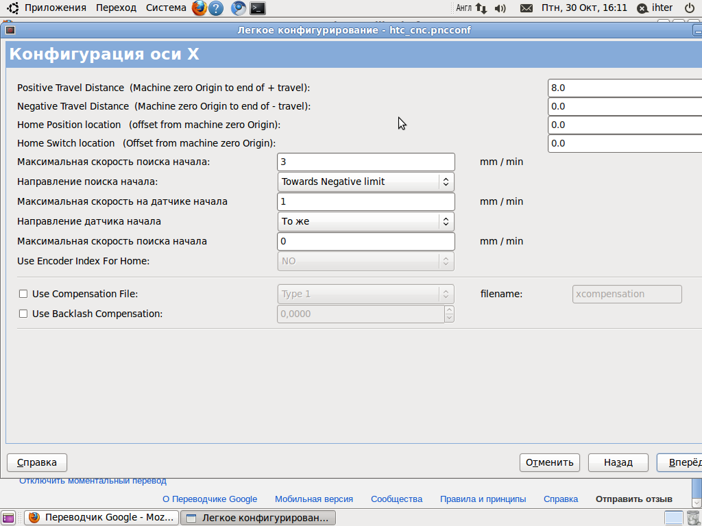 5.Во время конфигурации , разные окошки просто убивают! что за еденицы измерения в верхних строчках где вроде как перемещения должны быть? метры , дюймы, мм,?! в картинку не влезла правая часть окна , но там нет едениц измерения! или из ненадо?