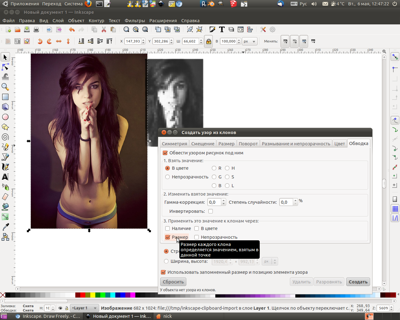 где Ты взял "создать узор"Nick писал(а):Последняя вкладка в Создать узор из клонов. И там выбираешь "размер".