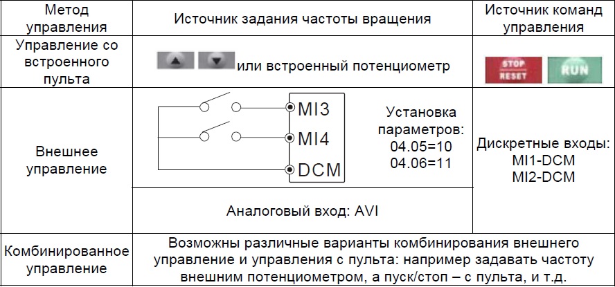 Добрый день. Нужна помощь в подключении частотника VFD-E к плате PLC4x-G2. С самой то платой вопросов нет. Реле работает как ключ, включение-выключение. Три контакты +10, управление, Gnd. Вопрос куда это все подключить на этом частотнике. До этого подлючал Lenze, так там все просто и понятно. А здесь