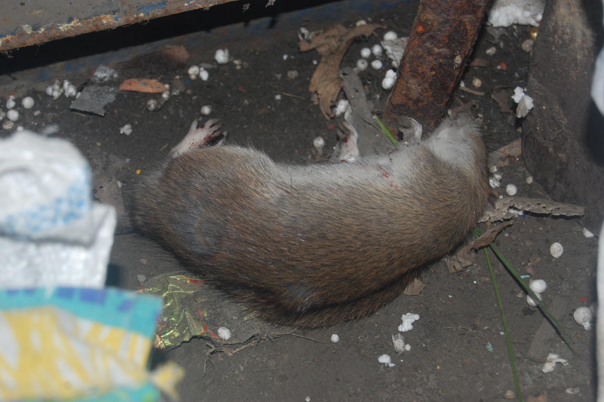 вот фото незванной гостьи с двумя дырками калибра 5.5 в дурной башке, посреди шариков полистерола :)