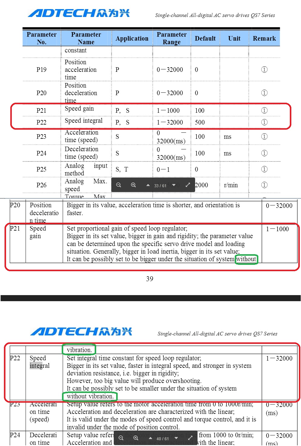 Там написано например типа так - параметр номер 15 увеличиваем пока не появятся вибрации , потом уменьшаем на 15 % , потом крутим параметр 21 пка не появятся вибрации и т.д. ( номера параметров для примера , к вашим сервам не относятся ).