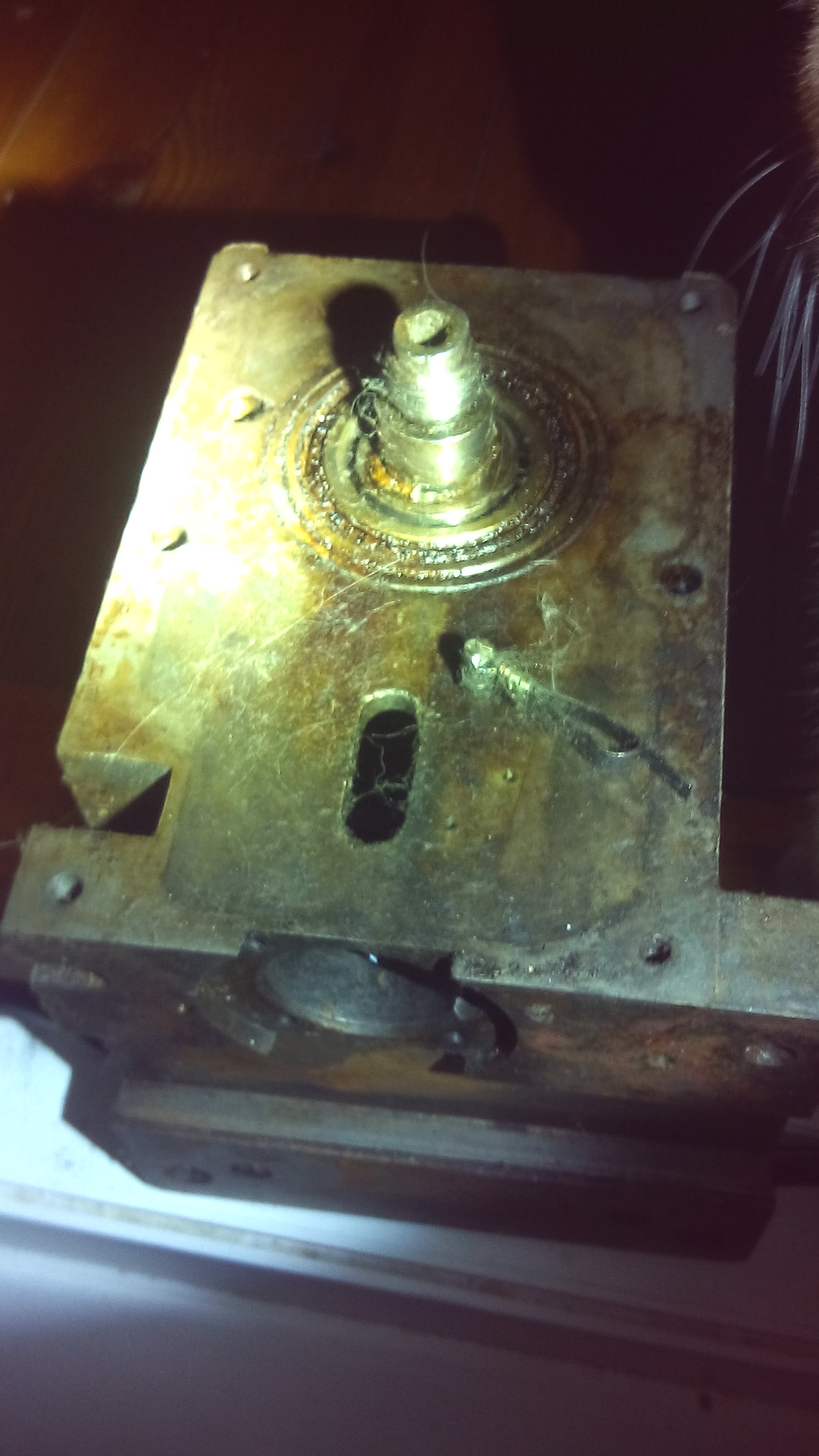 Вот фото снизу. В отверстии ходит поршень, а к поршню прикручен поводок.