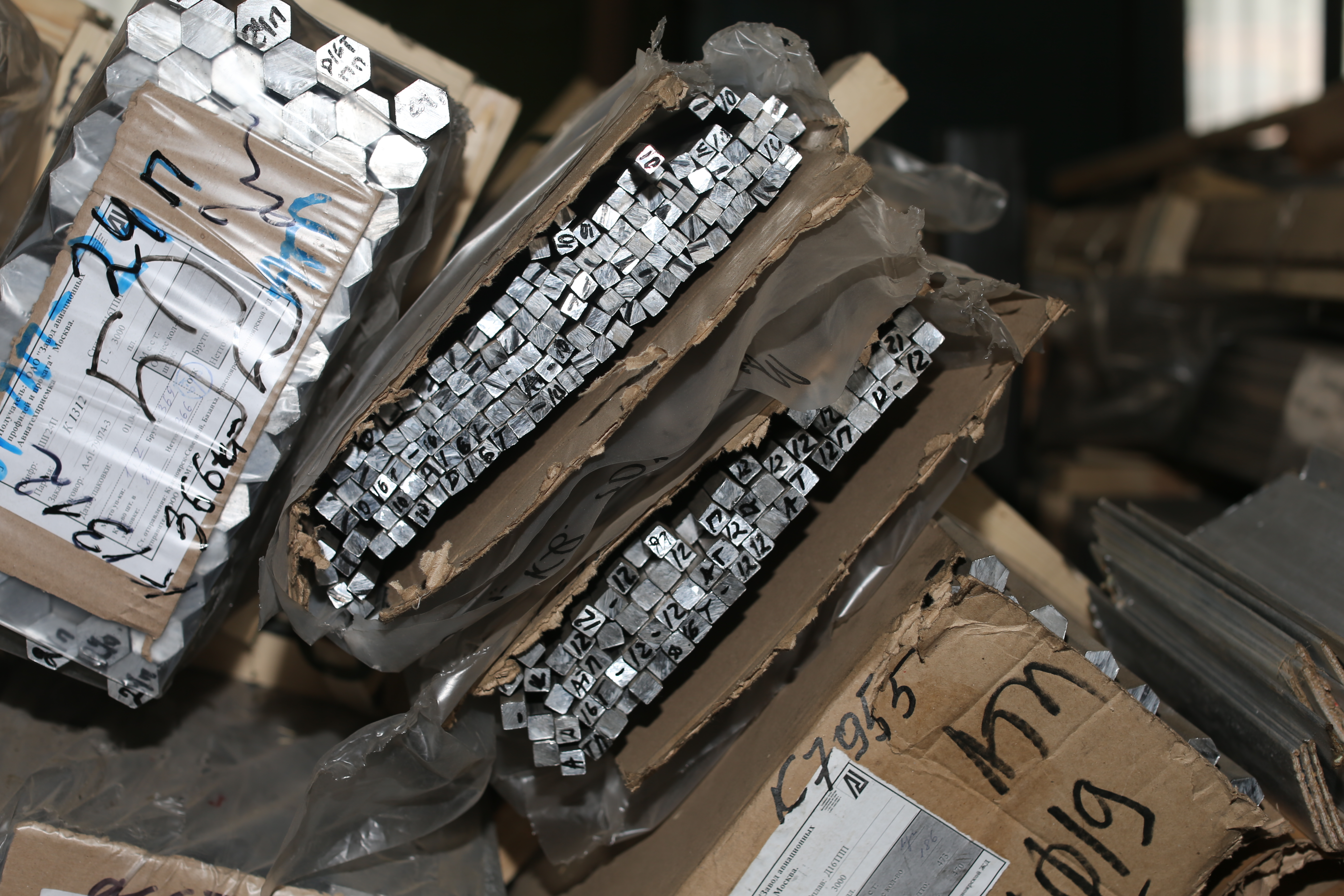 В95ОЧТ3, В95ПЧТ3, В93ПЧ, 1933, В95ПЧ (про эти сплавы можно почитать на http://viam.ru/al_wrought_1) Д16, 1163БТ и 1163Т, Д20Т и 1201Т, 1561 и 1561Б, АК6, АК6Т, АК8, АК4-1Т и АК4, АК4-1ЧТ, АД1, А5, АМЦ, АМГ2, АМГ3, АМГ5, АМГ6, АМГ6Б, Д16ЧТ, Д19ЧТ, Д19, ЛС59-1ГК, М1ГК, МА2-1ПЧ, АМГ6М с АТП, АД33Т1, 6061Т6 и АД35Т1, 6082Т6. Есть Проволока Д16ПТ, В65, Д18. Есть в остатках прокат из 1960, 1980, 1973, 1973ПЧТ2, В96, В96Ц3.