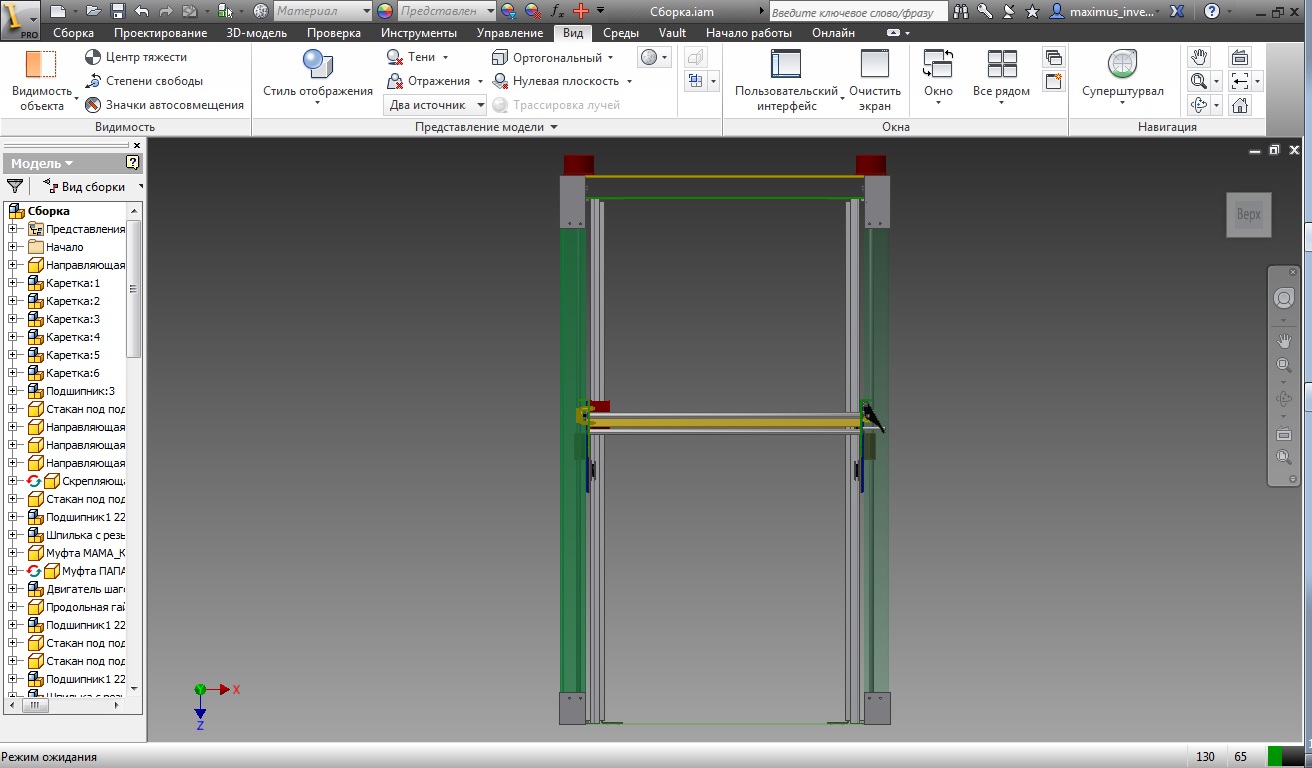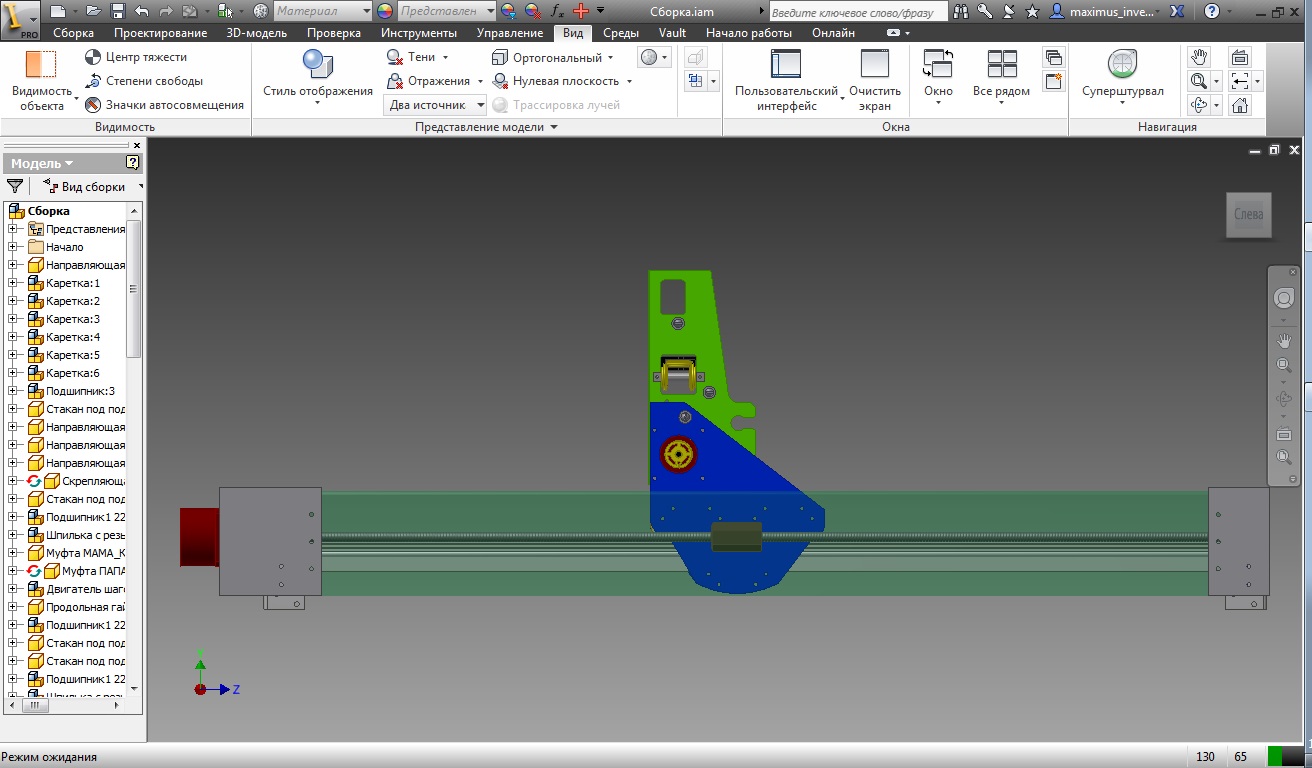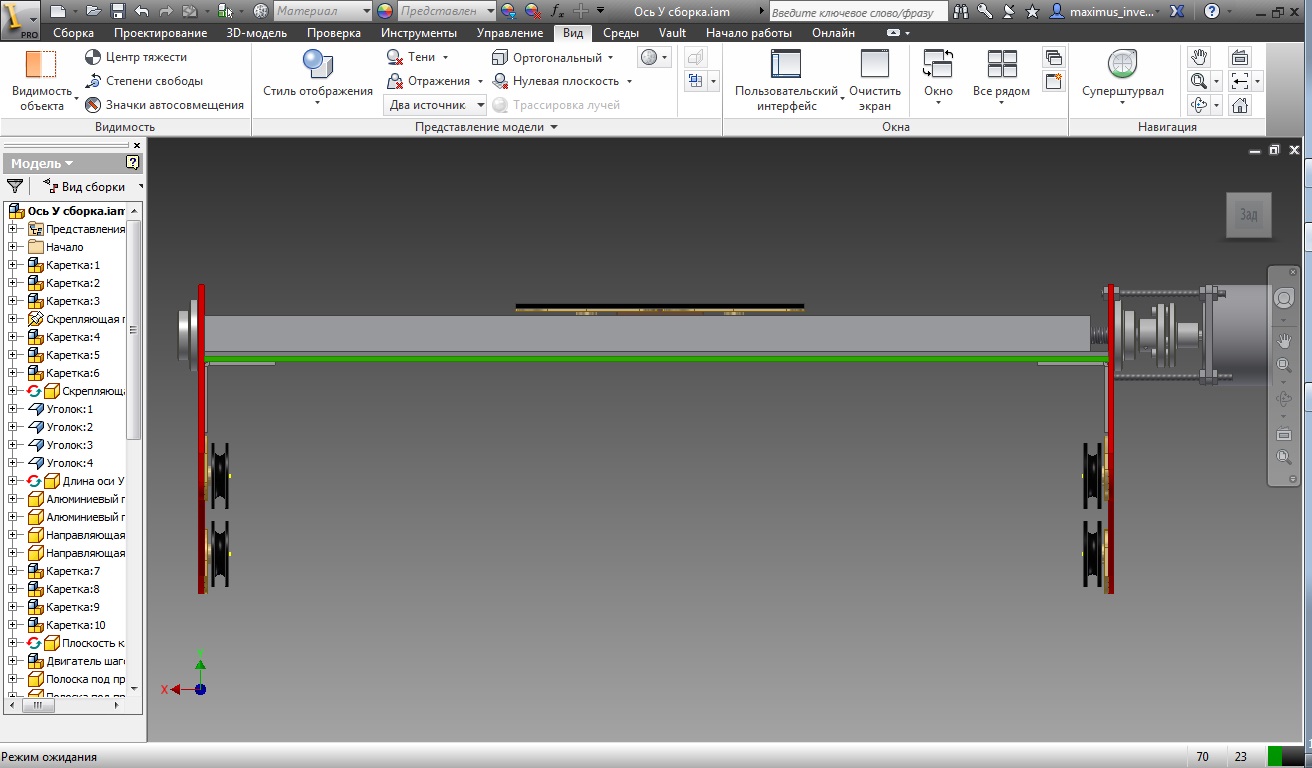 Придя вчера с универа в общагу, решил обдумать конструкцию оси У. недавно виделся с фотографом, он снимал видео, и использовал приспособление для так называемого "подъезда". Конструкция была сделана с мебельных направляющих и колес для них. Я взял за основу эту идею. Через 6 часов моделинга, ось была готова (фото 4-8).