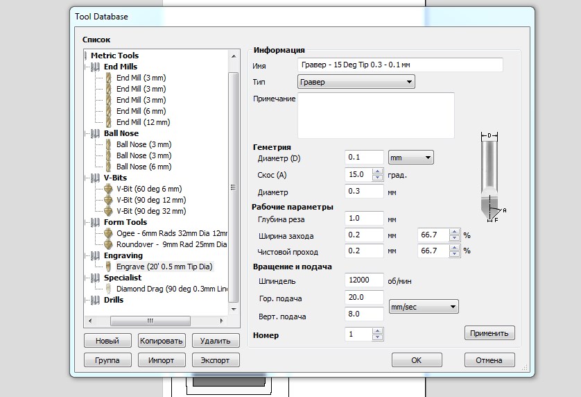 Уважаемые знатоrи Vectrica. Подскажите как правильно добавить гравер в базу инструментов.