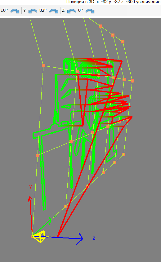 1) Выполнять только выделленый список кодов: 2) Добавил управление с помощью мышки: 3) Добавил маштабирование выполняемого кода, когда нужно выполнить гравировку, в определенной области, (правда это отхождение от правил того как сделано в других программах... :-) ) 4) Добавил и проверил гравироку на детали закрепленной не горизонтально: