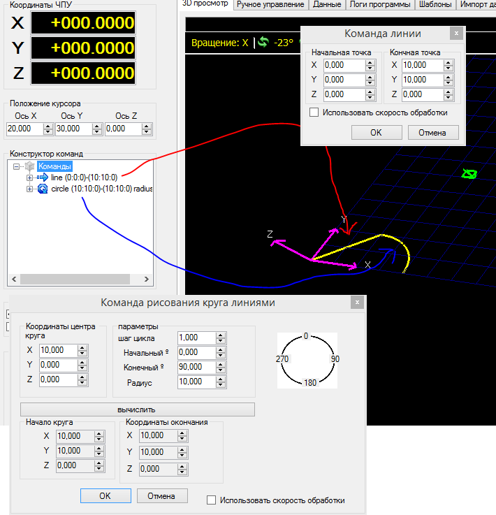 Ну тогда добавлю и такой функционалvovan писал(а):15 лет назад был бесплатным, сейчас ценник висит, значит есть потребность, http://www.simplecnc.com/newinterface.htmselenur писал(а):Т.е. с помощью простых элементов, линии и дуги, можно было по быстрому накидать траекторию движения,