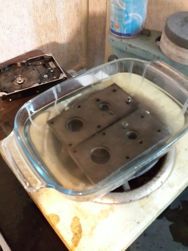 -"вываривание" (чернение) металла в щелочном растворе Нитрата натрия контрабандное средство дало железке вот такой радикально черный цвет - оксидирование люминия в кислом растворе с последующем окрашивание в растворе краски от струйника и тот же самый анокс для держателя хотэнда, но покрасил с баллончика...посмотрю , что дольше не слезет