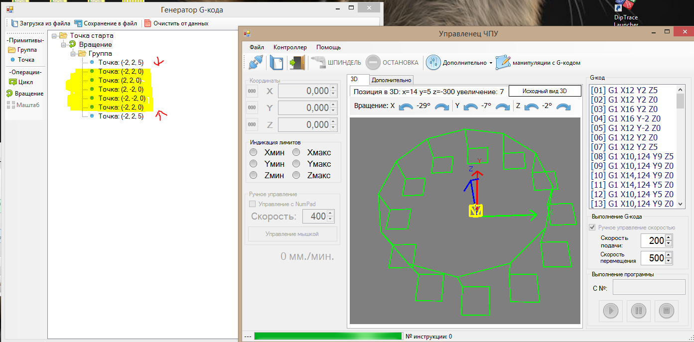 то в последствии, можно выполнить поворот всех точек в группе, относительно центра осей (0,0):