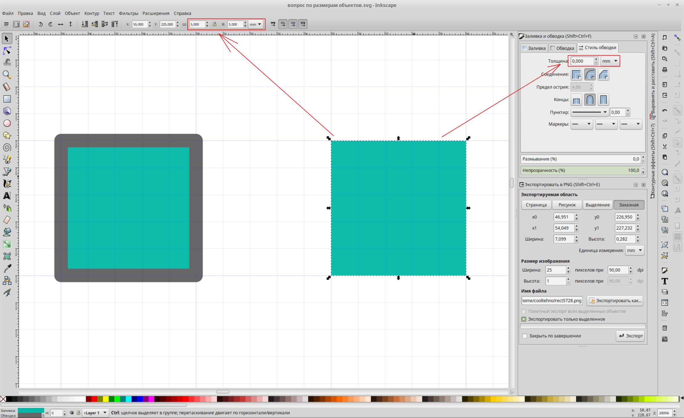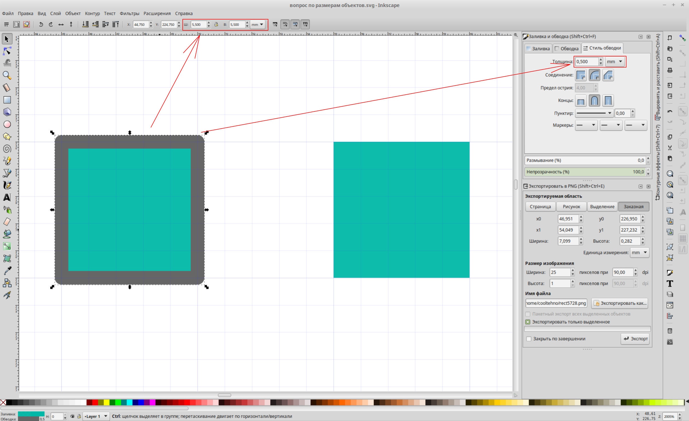Inkscape - размеры объектов и учет толщины обводки [РЕШЕНО]