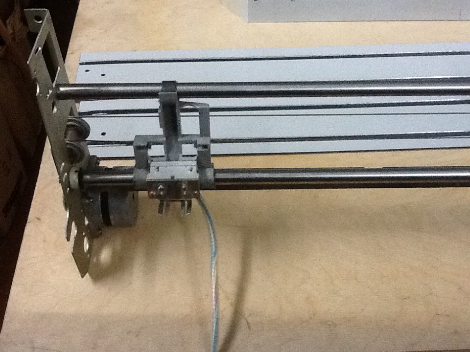 Сразу у препода появилась мысль по поводу переделки конструкции. Ну а пока все сохнет, решили поделать фото для большей наглядности. Вашему вниманию фото поклейки, муфт, каретки на ось Х, и сама ось У (механика взята с матричного принтера).